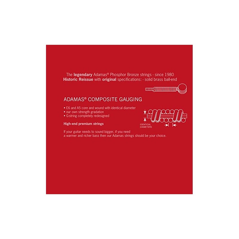 - Product Description: Adamas acoustic guitar strings Historic Reissue Phosphor Bronze Extra-Light - high copper content - E6 and A5 string core - high quality guitar strings - environmentally friendly packaging.