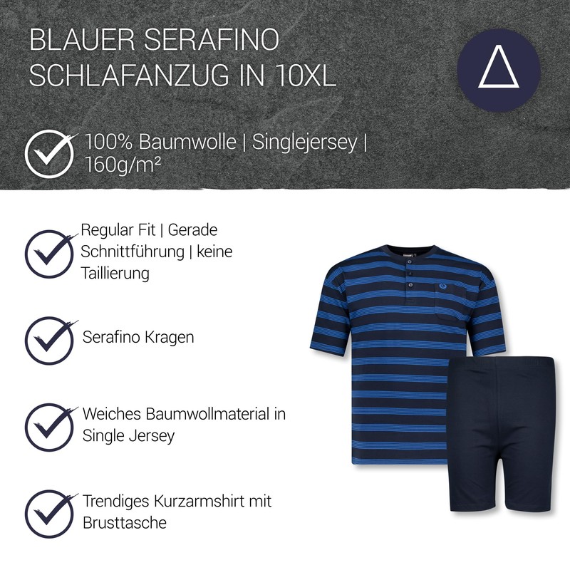 ADAMO Serafino Short Striped Pyjamas in Navy for Men Anil Series Plus Sizes 2XL to 10XL, blue