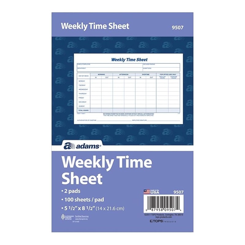 Adams Weekly Time Sheet, 1-Part, 5.5 x 8.5 Inches, Blue/White, 100 Sheets Per Pad, 2 Pack (9507ABF)