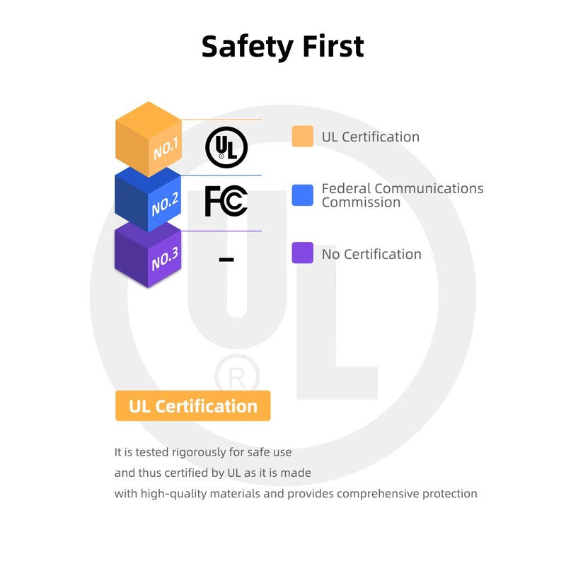 • Certificación UL de seguridad: los cargadores Nicpower cumplen con los estándares de seguridad eléctrica: con materiales de la más alta calidad e incluyen múltiples características inteligentes que protegen contra sobrecorriente, sobrevoltaje, sobrecarga, protección contra cortocircuitos y recuperación automática