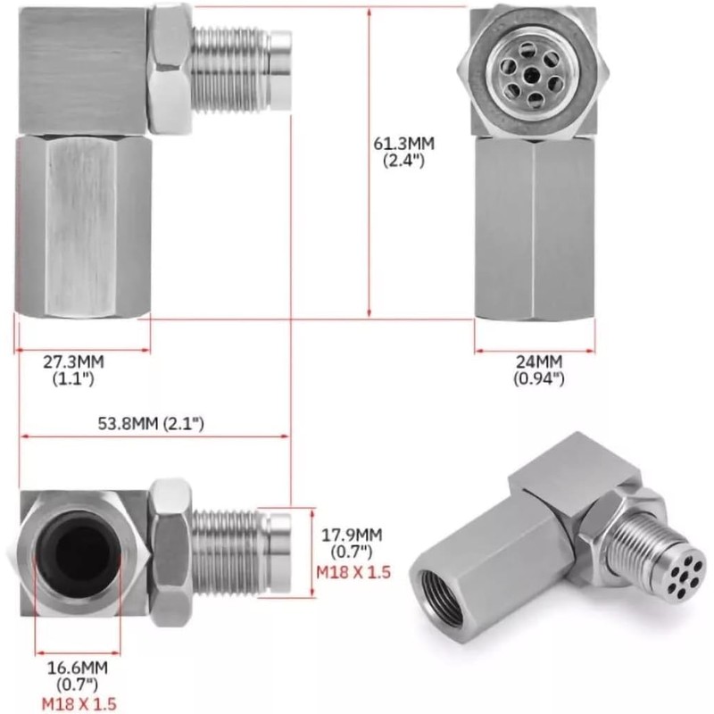 - Adaptador del sensor de oxígeno, se puede utilizar de diferentes maneras a través de adaptadores de ángulo recto y 90 grados. Viene con una lavadora de sensores de O2 de múltiples componentes, sin modificaciones, sin herramientas complejas.