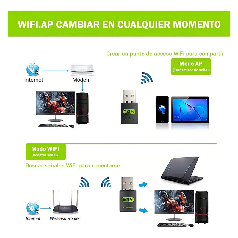Descripción Limpia: 2 en 1 wifi y bluetooth: