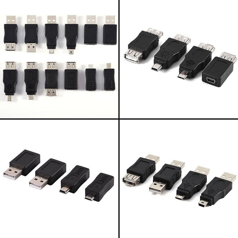 Adaptador USB 2.0 de 12 Piezas, Conectores Convertidores Micro/Mini Macho Hembra, Adaptador USB Macho a Mini/Micro USB Hembra, Plug and Play