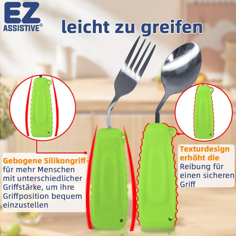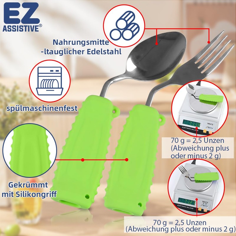 - Use for: EZ Assistive weighted utensils, which can also be considered as weighted utensils against hand shaking, have been specially designed for people who need extra comfort and support during meals, such as People with disabilities and people with tremors, arthritis, weak grip or Parkinson's. This type of anti-tremor utensils is designed to help them maintain independence and elegance while enjoying their food