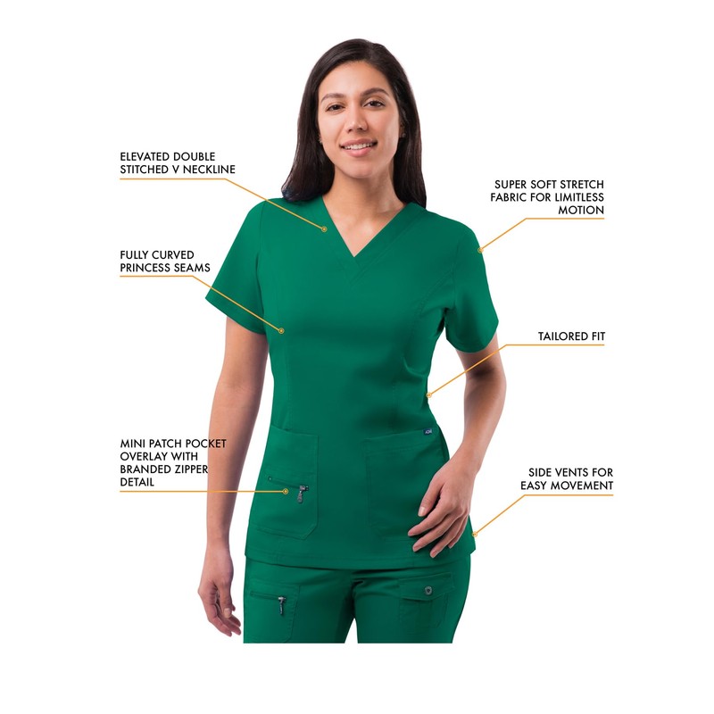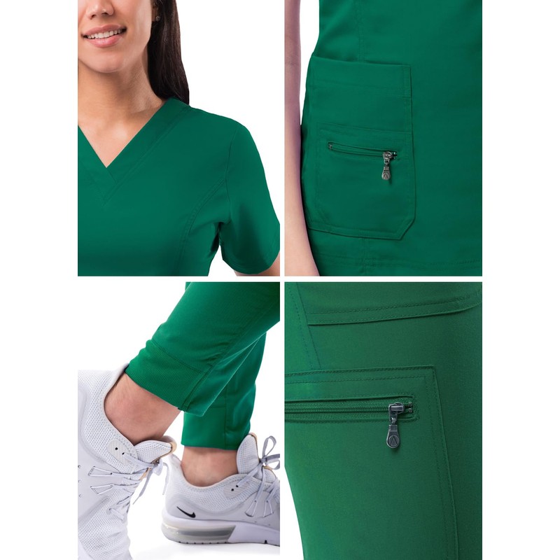 Adar Pro Flawless Plus Scrub Set for Women - Elevated V-Neck Top & Jogger Scrub Pants - Hunter Green, size: s