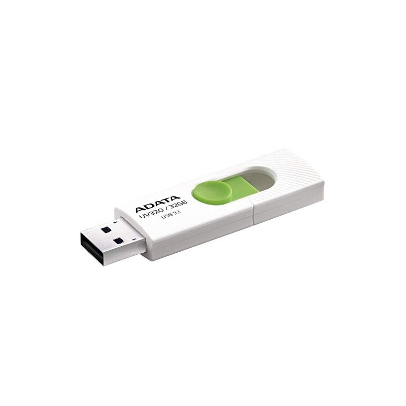 ADATA 32 GB Memoria Flash USB 3.1 Deslizable Color Blanco con Verde (Modelo UV320)