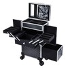 Adazzo Professional Makeup Artist Rolling Train Case Multi-functional Cosmetic Train Case Large Trolley Storage Case for Nail Technicians Cosmetology Case with Compartments for Hairstylist (Black)