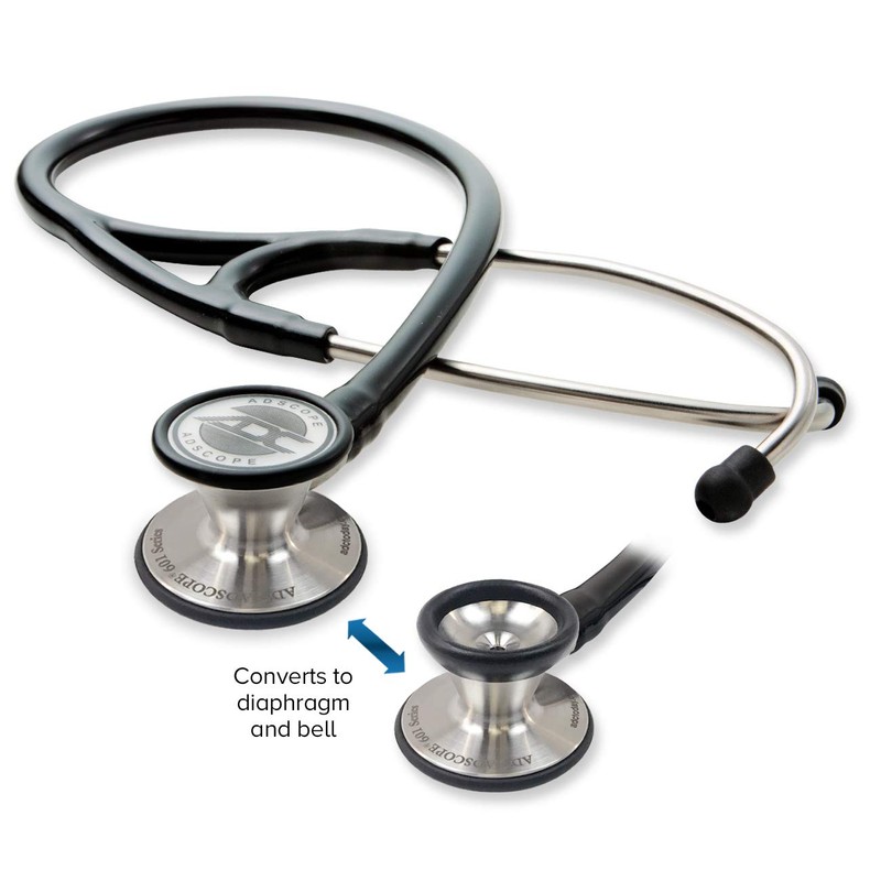 - VERSATILE: Convertible cardiology stainless steel chestpiece includes fixed adult diaphragm and threaded pediatric diaphragm that easily converts to an open bell for low-frequency sounds. Overall length 27 inches, weight 8.5 oz.