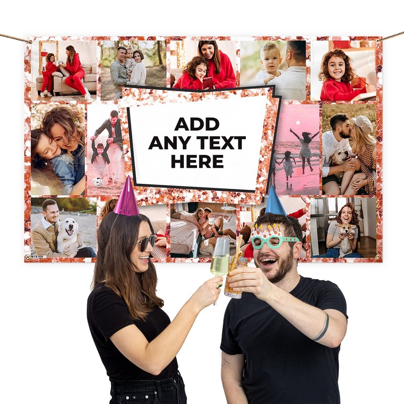 Add Pictures & Text Rose Gold Sparkle Photo Celebration Banner - 14 Photo - 5 x 3ft | Birthday, Anniversary, Party Backdrop | For Use Indoor & Outdoor - Made in England