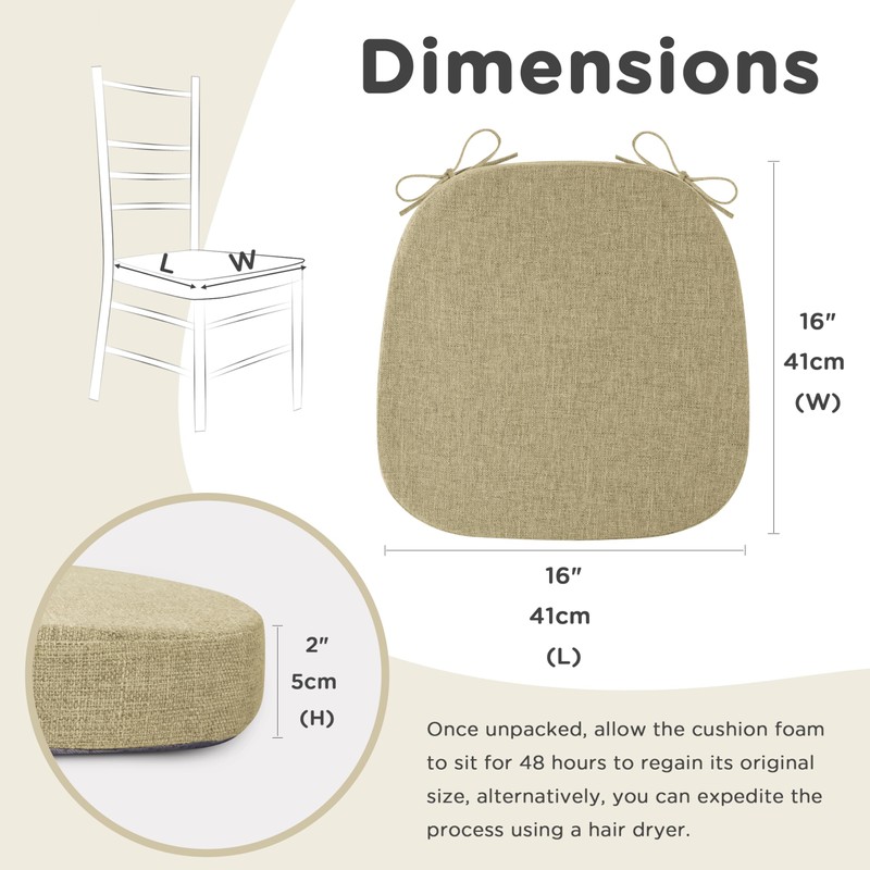 - Refined Fit Design: Featuring a contoured D-Shape, these 16"L x 16"W x 2"H thick kitchen chair cushions suit most chairs in dining rooms, kitchens, bedrooms, and living spaces. Arriving vacuum-sealed, they fully expand within 48 hours—allow foam to rebound for optimal comfort.