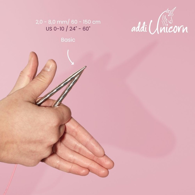 - addi Unicorn Circular Needles are not just for princesses! These ergonomic needles are designed to add comfort to knitters' hands, especially those who suffer from arthritis. The metal needle tips are 'spiralled' to help improve your grip while allowing yarn to glide effortlessly. And the cord ... well that too contains a little bit of magic as it is pink.