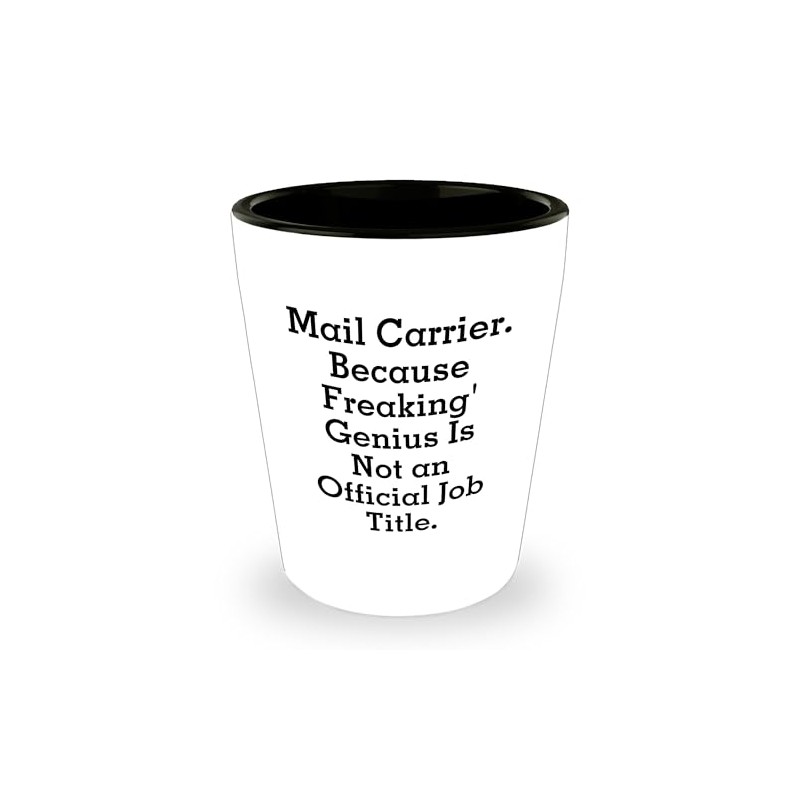 - Start your holiday season with a smile and a refill for a mail carrier with our Shot Glass, featuring the quote 'Mail Carrier. Because Freaking' genius Is Not An Official Job Title.' and made from ceramic material, microwave and dishwasher safe, perfect for daily use.