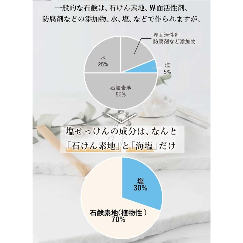 - Soap Material: Made from plant-based materials with a traditional method. Sea Salt: A gift of minerals from the mother sea. Made in Japan