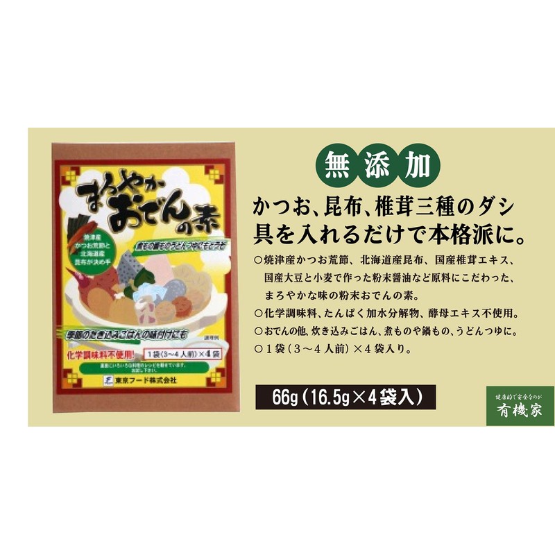 Additive-free, Mellow Oden no Mototo 2.3 oz (66 g) (16.5 g x 4 bags) x 2 pcs. Powder oden with a mellow taste that is particular about ingredients such as Nekoposu Yaizu bonito Ragbu, Hokkaido kombu, Japanese shiitake mushroom extract, 1 bag (3-4 serving