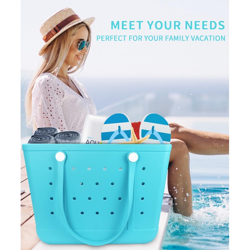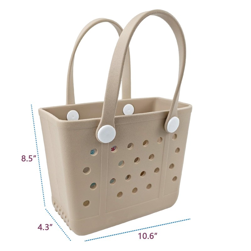 This is a perforated rubberized beach bag is not only suitable for beach vacation, but also for many other occasions. For example, they can be used as shopping bags, sports or travel bags, daily leisure bags, swimming bags, beach bags, gym bags, yoga bags, picnic baskets, vegetable baskets, daily carry bags and so on. Easy to travel and easy to clean.