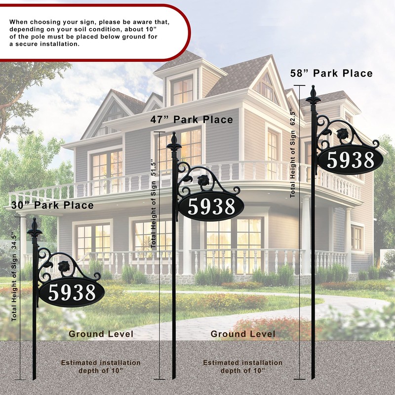 - PERSONALIZE WITH ADDRESS NUMBER AND NAME: Our Boardwalk address yard signs come with two plaques for dual customization – one for the house number and the other for the family name or street name. Choose between different font styles to get the best of beauty, elegance, and of course, utmost visibility. The numbers applied are made with engineer-grade reflective vinyl, rated to reflect brightly at least seven years.