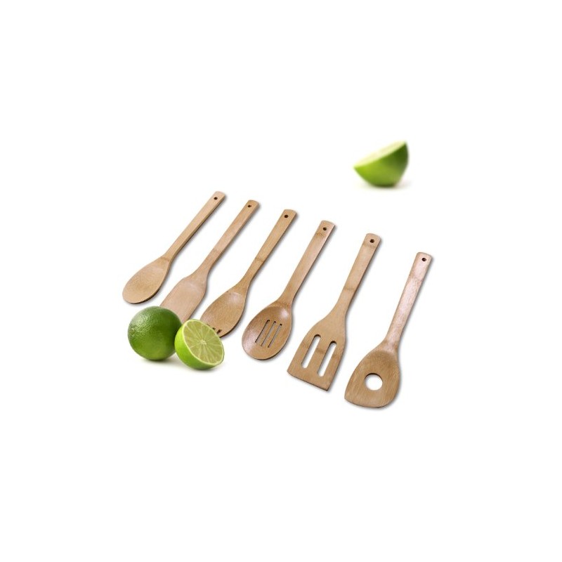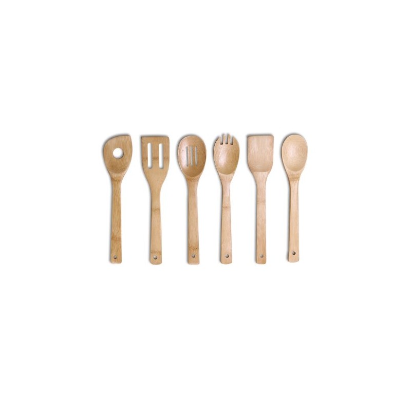 - Prepare food in style with attractive bamboo utensils: a spoon, slotted spoon, spatula, slotted spatula,