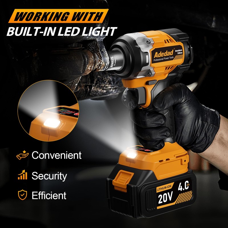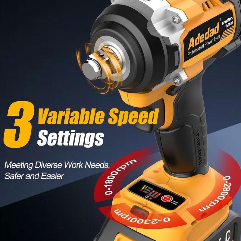 - High Torque for Heavy-Duty Applications-Adedad power impact wrench packs an impressive 750N.m of torque, providing the power needed to tackle tough, heavy-duty bolts and fasteners with ease. Whether you’re working on automotive repairs, construction projects, or industrial tasks, this high-torque capability ensures you can handle even the most stubborn hardware without breaking a sweat.