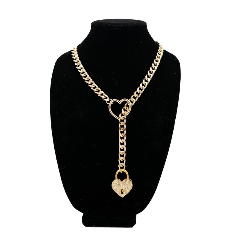 ADEMISHIA Women Slip Chian Necklace With Padlock, Punk Gothic Gold Cuban Chain Necklace With Heart-shape Lock Adjustable Lariat Y-Necklace For Women Size 24” 28” (Gold, 24")