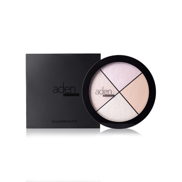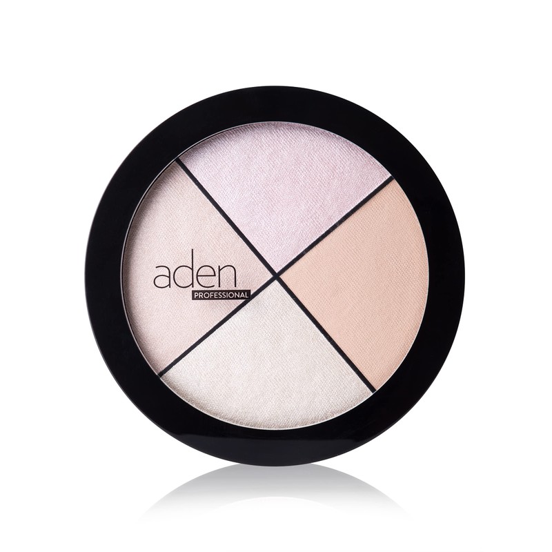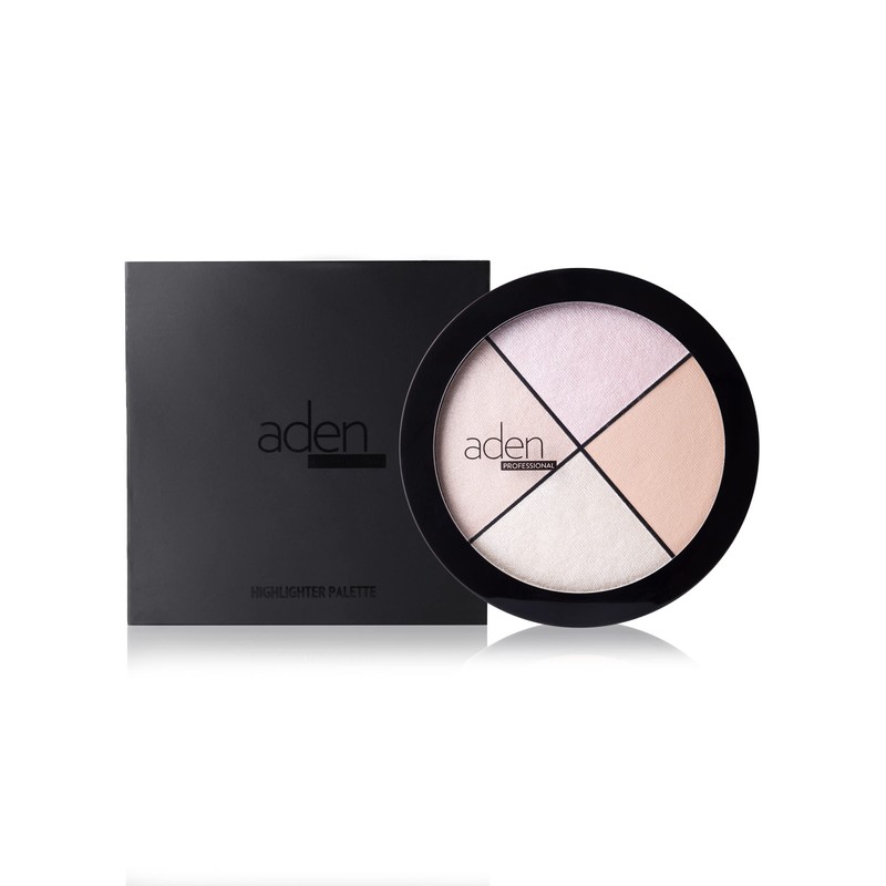 Aden 4 highlighter palette makeup – 22gr – Natural & Durable Quality– Light Coverage & Inner Glow – MADE IN ITALY (Highlighter Palette)