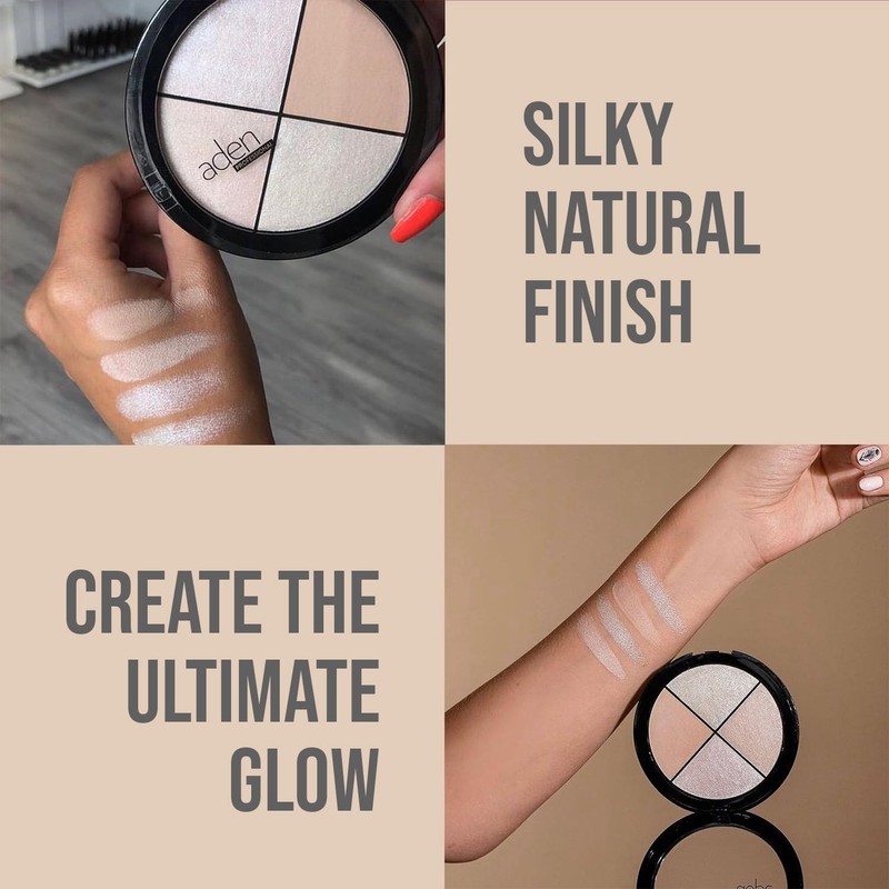 - Shimmering effect: aden highlighter palette offers radiant glow, versatility, and effortless glam for a youthful and customizable look on any occasion due to their shimmering ability.