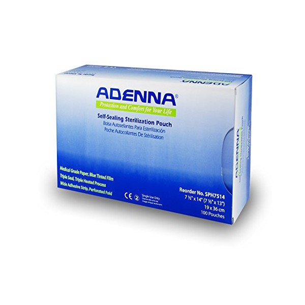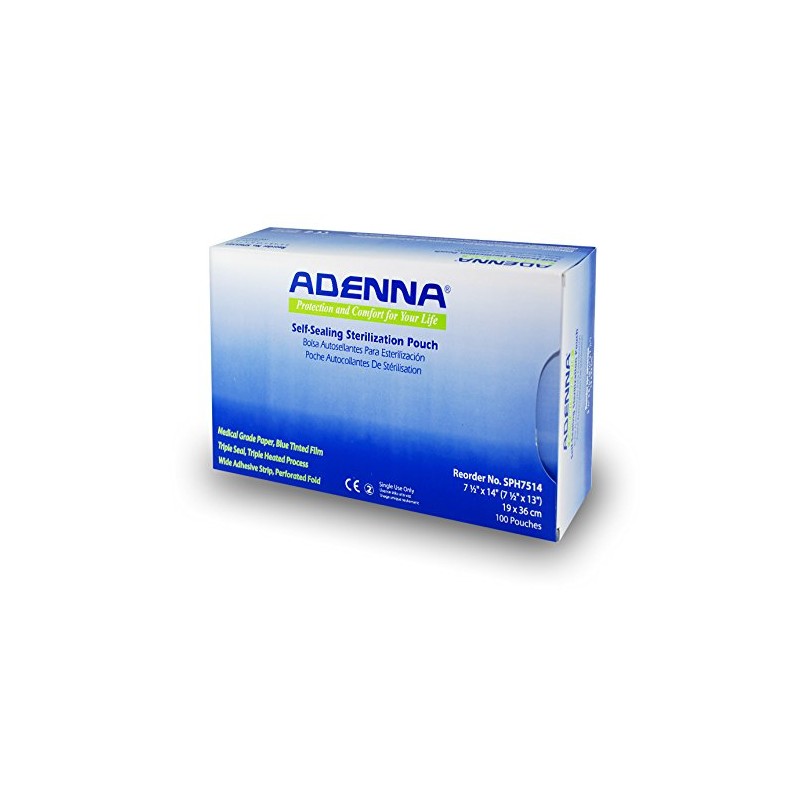 Adenna - SPH7514 White Paper/Blue Tinted Film 7-1/2" X 13 Sterilization Pouch (Box of 100)
