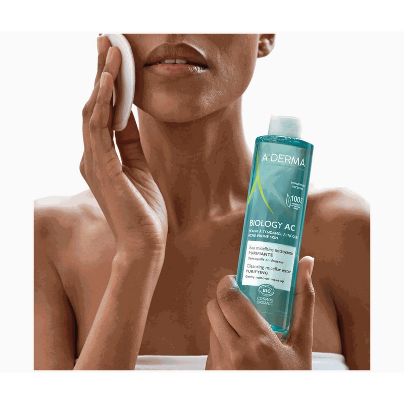 A-DERMA Biology AC Cleansing Micellar Water Purifying Organic 400ml is a cleanser and make-up remover that removes make-up and purifies the skin without drying it out.