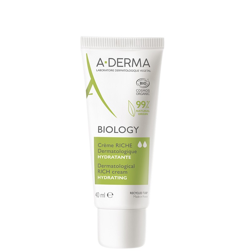 A-Derma Biology Moisturizing Cream with rich texture is a certified organic product, with 99% natural ingredients, moisturizes, balances and strengthens fragile dry skin.
