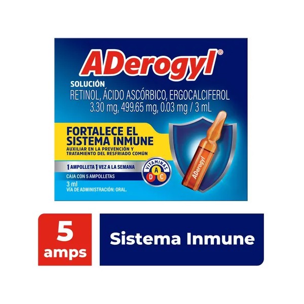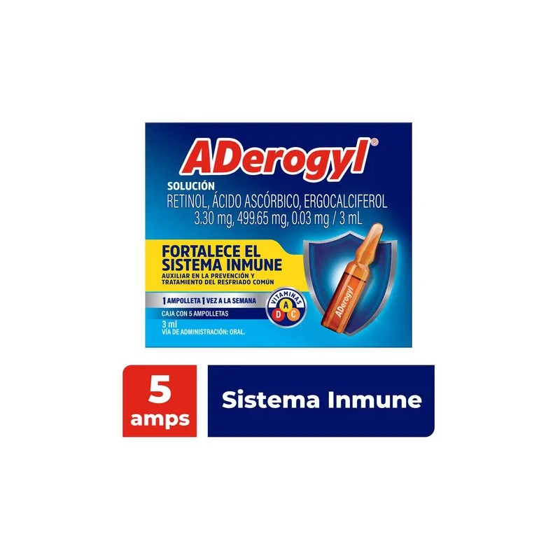 ADerogyl Multivitamínico 5 Ampolletas de 3 ml. Con Vitaminas A, C y D, Fortalece el Sistema Inmune y Refuerza tus Defensas