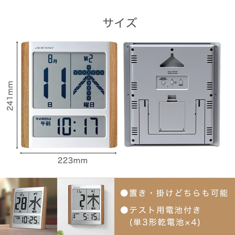 ADESSO(アデッソ) メガ曜日日めくりカレンダー デジタル 大きいサイズで見やすい 電波時計・時計表示オンオフ・12/24時間・朝昼夜を細かく表示・温...
