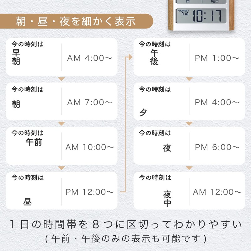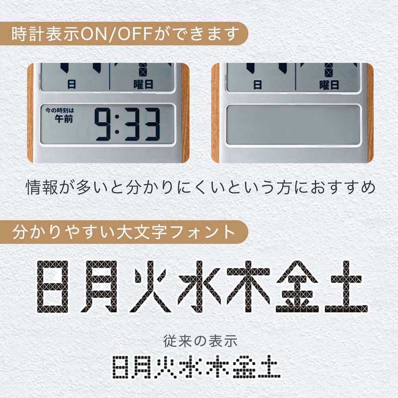 • 【正確な電波時計】紙のカレンダーと違い、めくり忘れても大丈夫。電波時計だから正確な日付と時刻を表示します。