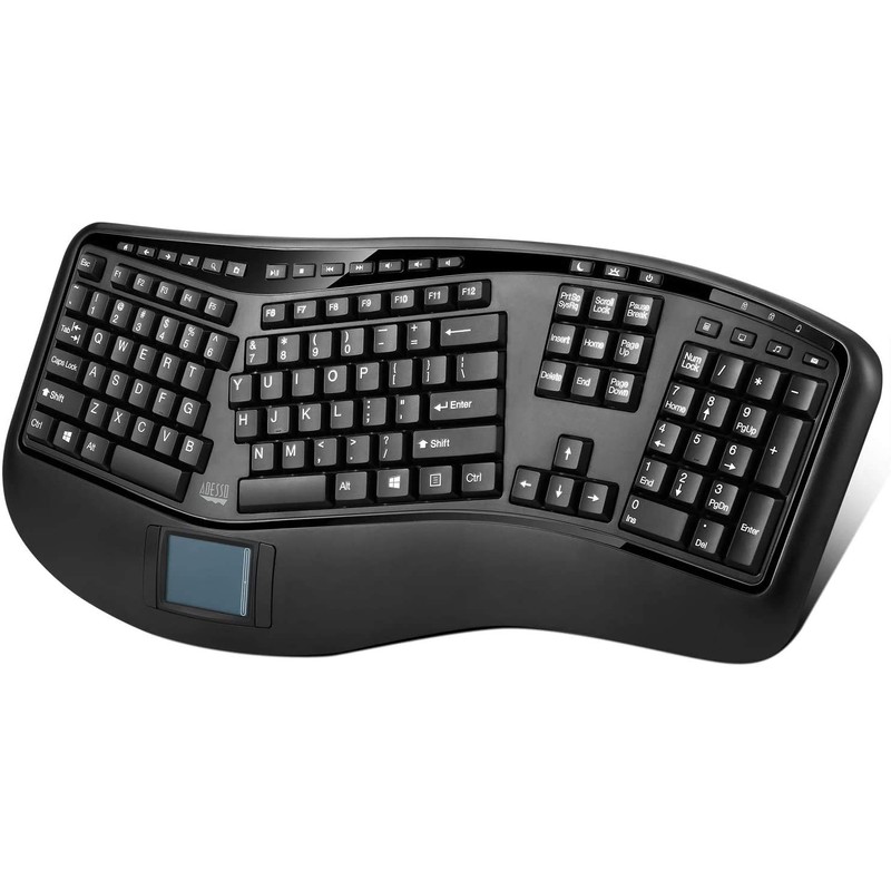 Adesso 2.4ghz Wireless Tru-Form Media 3D Ergonomic Touchpad Keyboard with Sp, Black