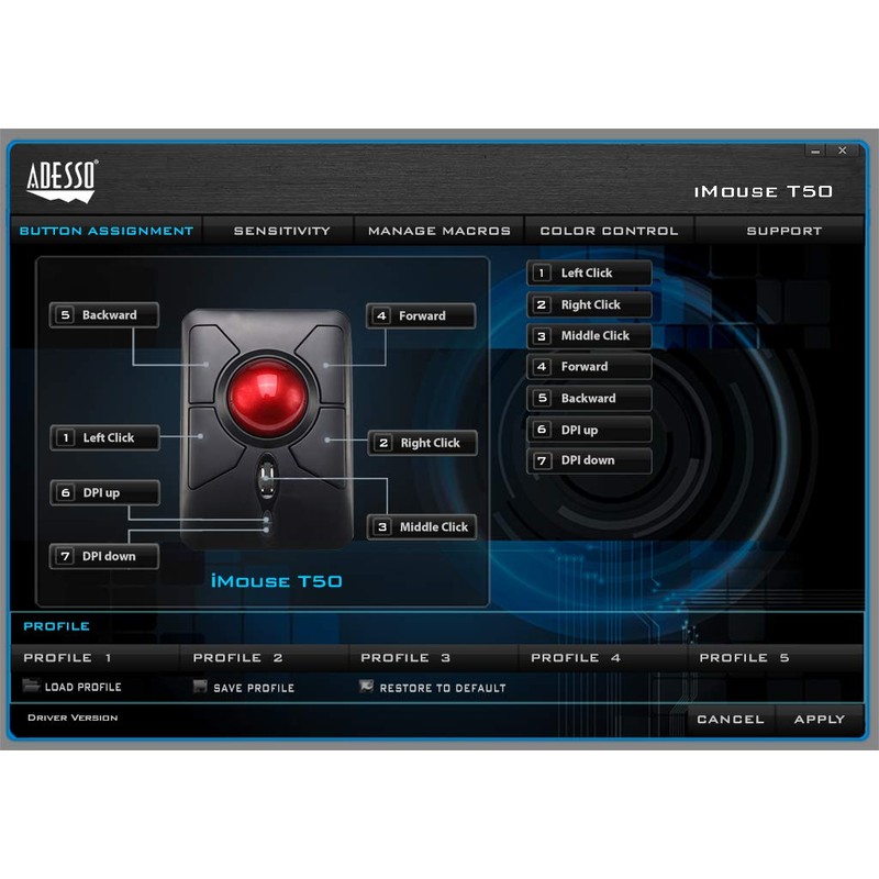 Adesso iMouse T50 Wireless Ergonomic Finger Trackball Mouse with Nano USB Receiver, Programmable 7 Button Design, and 5 Level DPI Switch, for Left and right Hand