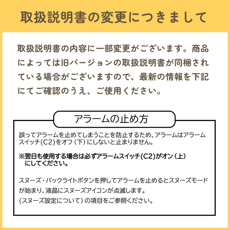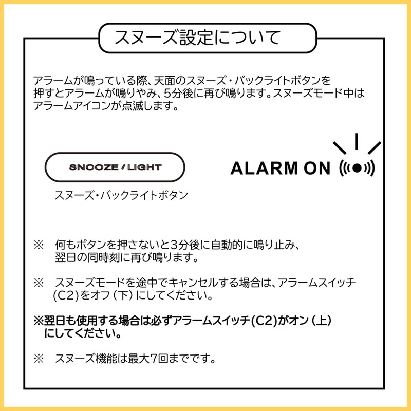 • [Features] The backlight LCD screen allows you to check the time even at night. It also has a snooze function to prevent you from sleeping twice Alarm sound can be switched between 3 modes: alarm, vibrator, alarm + vibrate