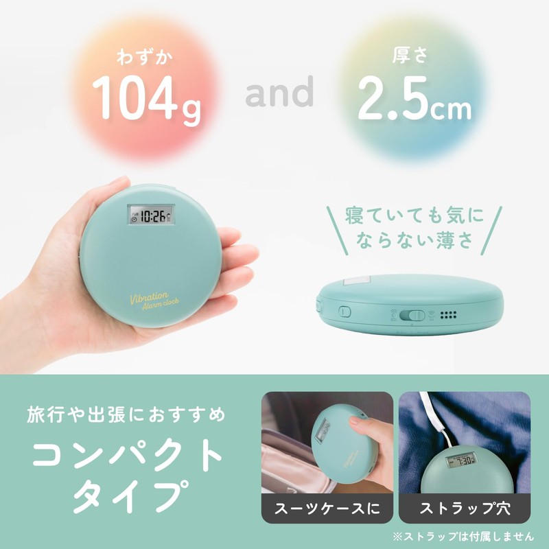 ADESSO Vibration Alarm Clock, Vibration Alarm Clock, Vibrating Type, Thin, Stylish, Compact, Cute, Mint Green
