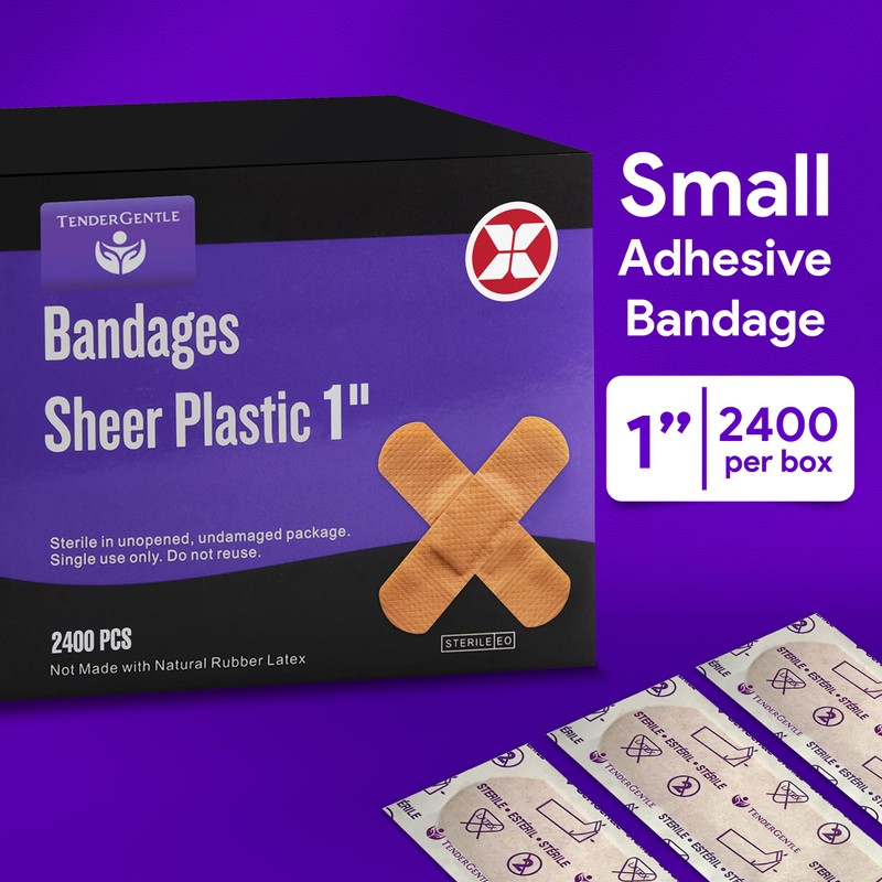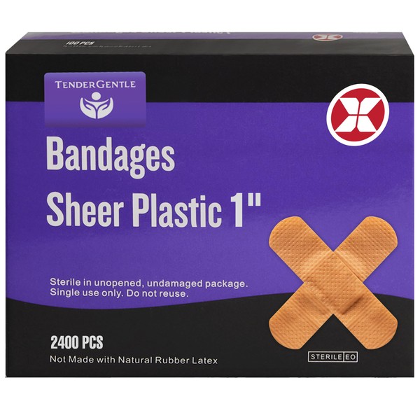 Adhesive Bandage - Case of 2400 1" Flexible Sheer Plastic Bandages for Cuts, Scrapes, Burns - Latex Free, Sterile Small Bandages