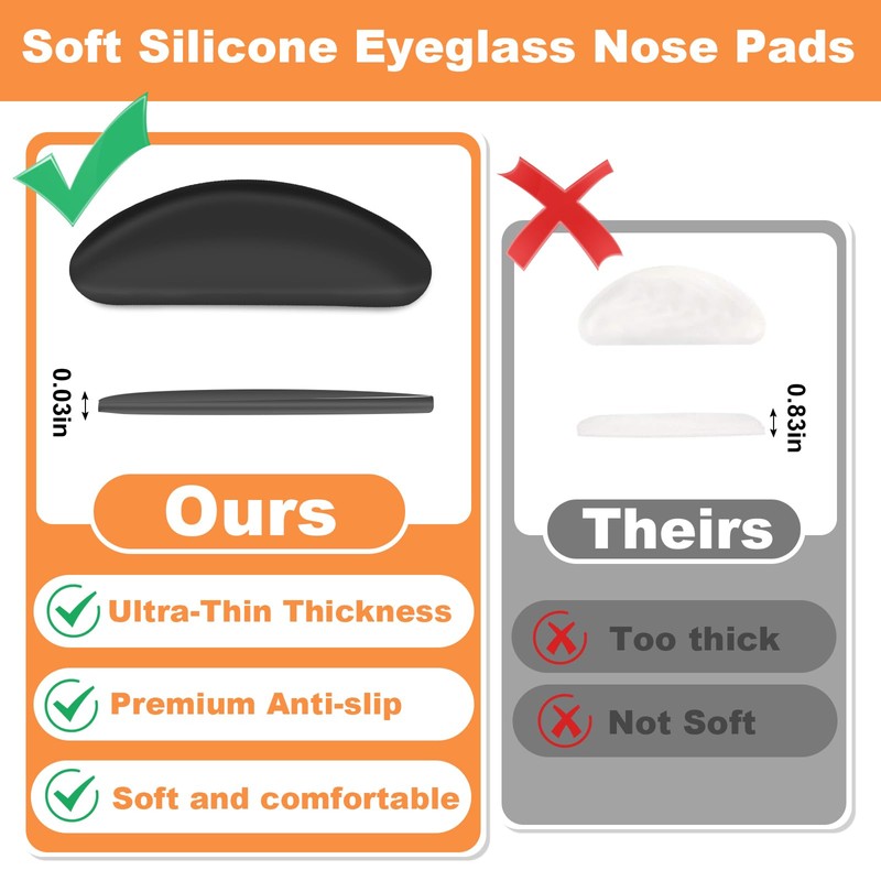 - 3,Anti-slip Nose Pads for Eyeglasses:These glasses nose pads are not only increase the height, but also reduce the burden effectively, help your glasses fit for your nose. The nose pads keep your glasses in place and not slide down easily