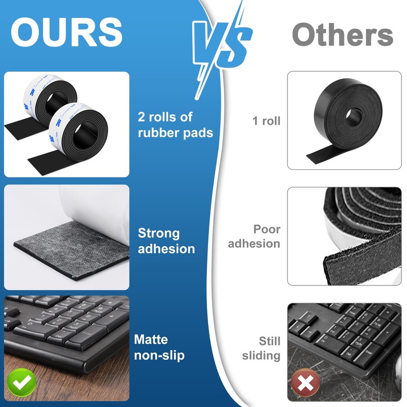 Adhesive Rubber Strips with Adhesive Backing, 2 Rolls Rubber Tape Adhesive Back, Non Slip Adhesive Strips Rubber Feet for Any Furniture and Appliances 1x40 inch