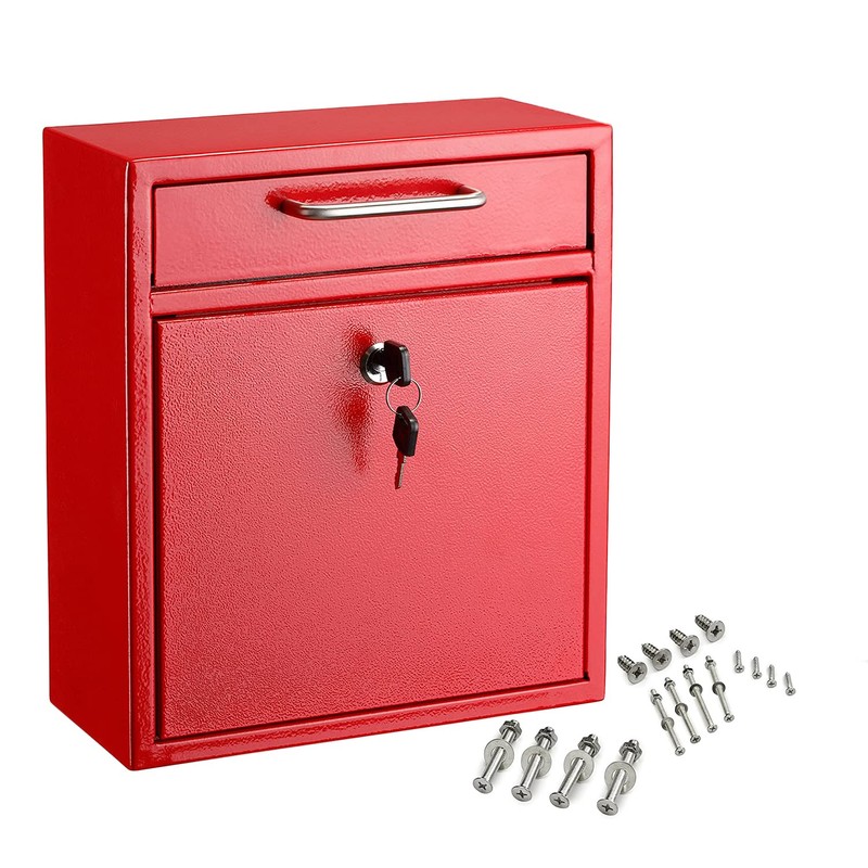AdirOffice Mailboxes for Outside Wall Mount Large with Key Lock, Metal Locking Mailbox with Post Outdoor, Residential Mail Box Lock and Key, Cash Drop Box for Money, Parcel, Envelopes & Cards Red