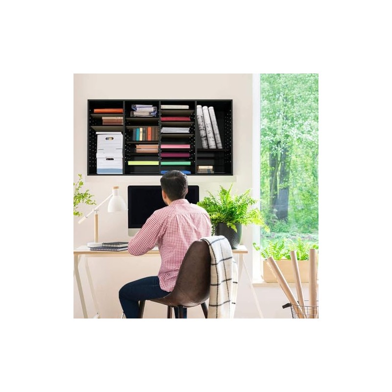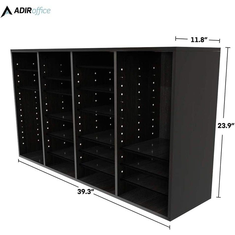 AdirOffice Wooden Adjustable Literature Organizer, 36 Compartment Office Mailbox, or Classroom Literature Organizer, Black