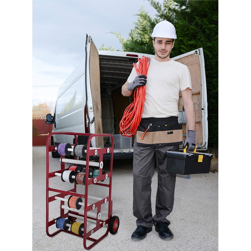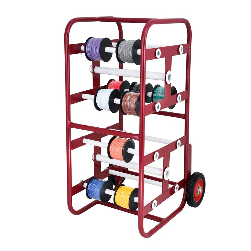 - VERSATILE USE. A perfect, hassle-free solution for transferring and carrying reels between job sites, this caddy is ideal for running cables and wires in the shop or on location, or paying out wire and cable at retail locations.