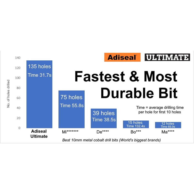 Adiseal Ultimate Fastest, Longest Lasting & Best Metal Drill Bit 10mm Cobalt