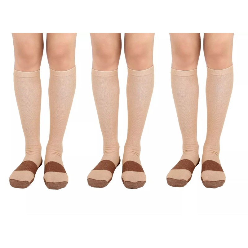 AdisirSocks 3 Pair Beige L/XL Compression Copper Socks Below Knee Support Calf Foot Ankle