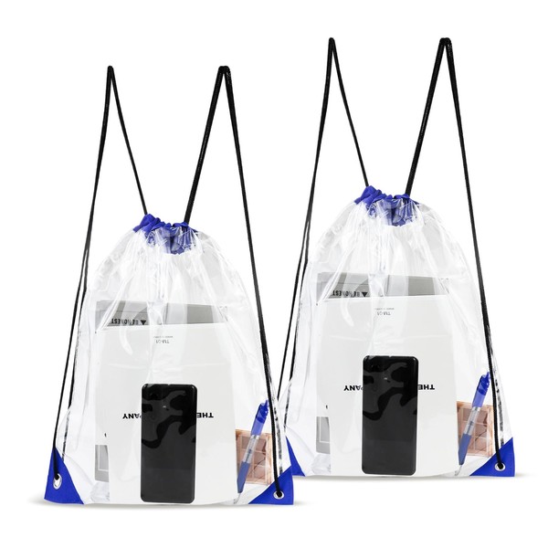 AdiStylinno 2 Pcs Drawstring Backpacks, See Through PVC Waterproof Drawstring Bags, Lightweight Clear Backpack for Gym Sports (2, Blue)