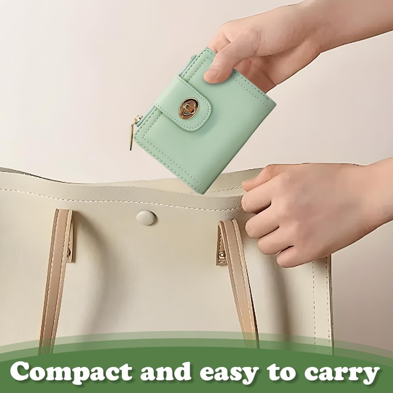 AdiStylinno Ladies Purse, PU Leather Wallet for Women with Zip Coin Pocket and Lock Buckle, Fashion Small Wallet Coin Purse with Multiple Card Slots and ID Window (Green)