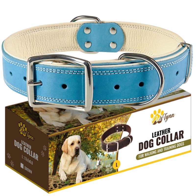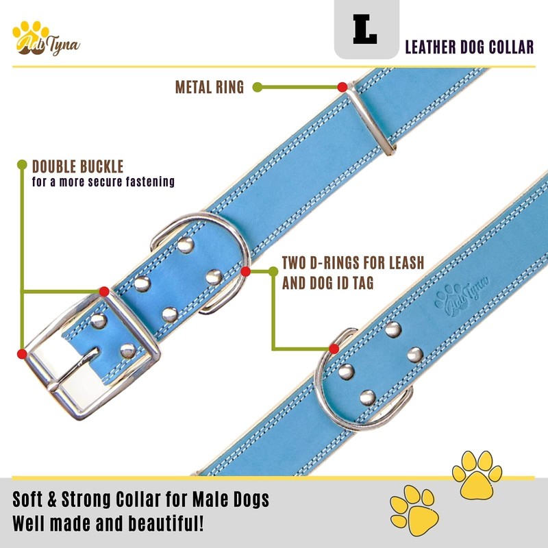 ADITYNA - Heavy-Duty Premium Blue Leather Dog Collar for Large Dogs - Perfect for Walking, Training, Hiking, and Running - Padded with Soft Genuine Leather for a Cozy Feel