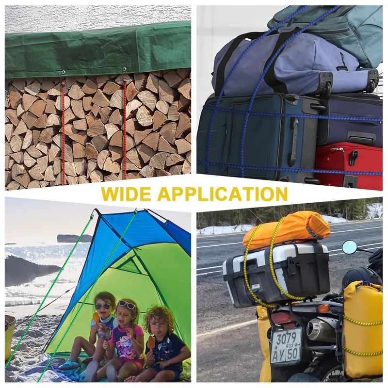 - 【High Performance Bungee Rope】: Simplify your next step or DIY project with our premium rubber bungee rope. The double braided jacket on each bungee cable provides robust grip. With the UV-resistant all-weather power cord, you can safely enjoy your outdoor adventures all year round, including camping, hiking, boating and more!