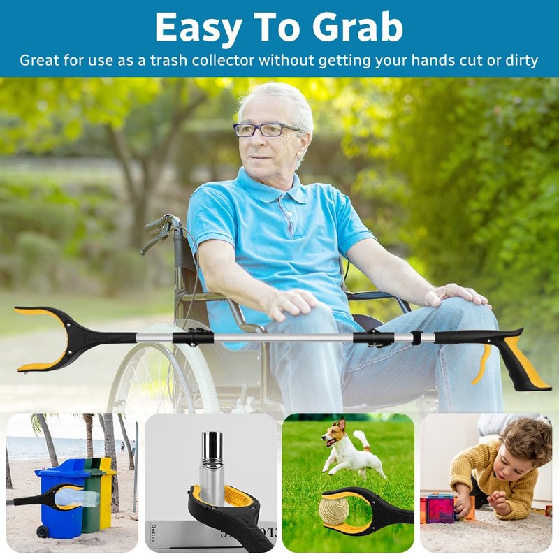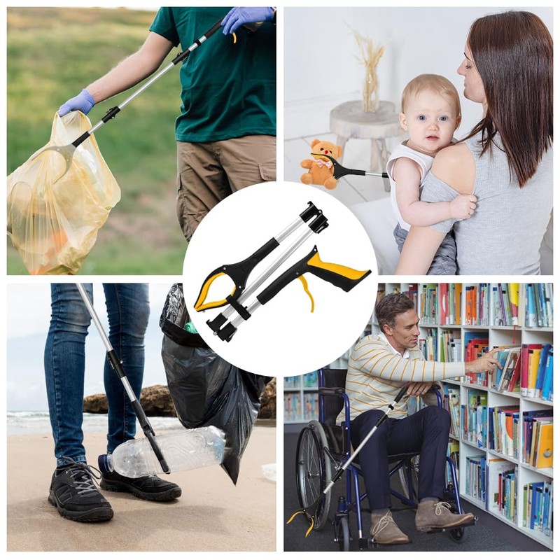 Adiwo Foldable Litter Picker Grabber, 91cm/36" Long Handle Litter Pickers Grabber Stick for Tall Users, 360 Degree Rotating Reach Aid, Helping Hand for Adults, Disabled, and Elderly, Yellow