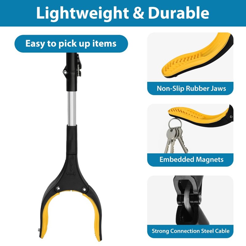 - 【 Extra long telescopic range】: The garbage clip can be extended to 91 cm, and it can pick up light and small items such as paper towels, cans, metal, bottles, glasses, etc. without bending over. It is very suitable for use as a garbage collector to avoid cuts or dirty hands. The top is equipped with a super strong magnet design, which can easily absorb small coins and metal objects such as keys without bending over, ensuring efficient completion of housework and daily tasks.