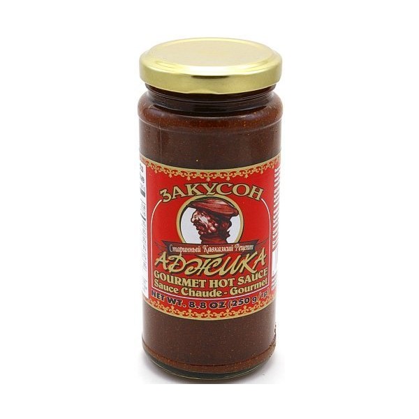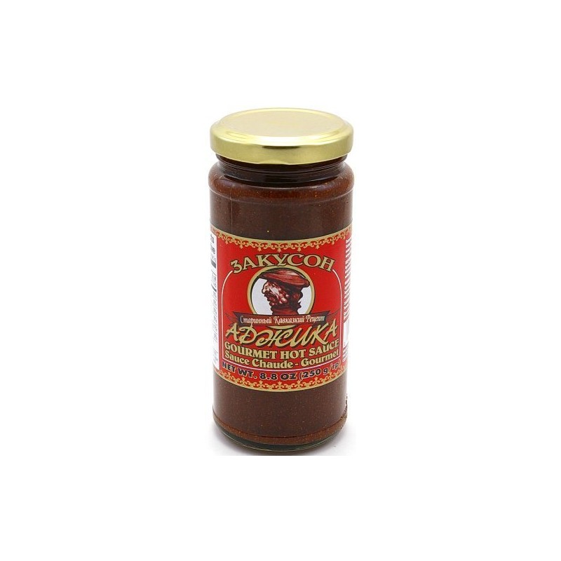 ADJIKA HOT" (Sauces) "CANADA", Packaged in Glass Jar, 250g. "Zakuson by Hyson